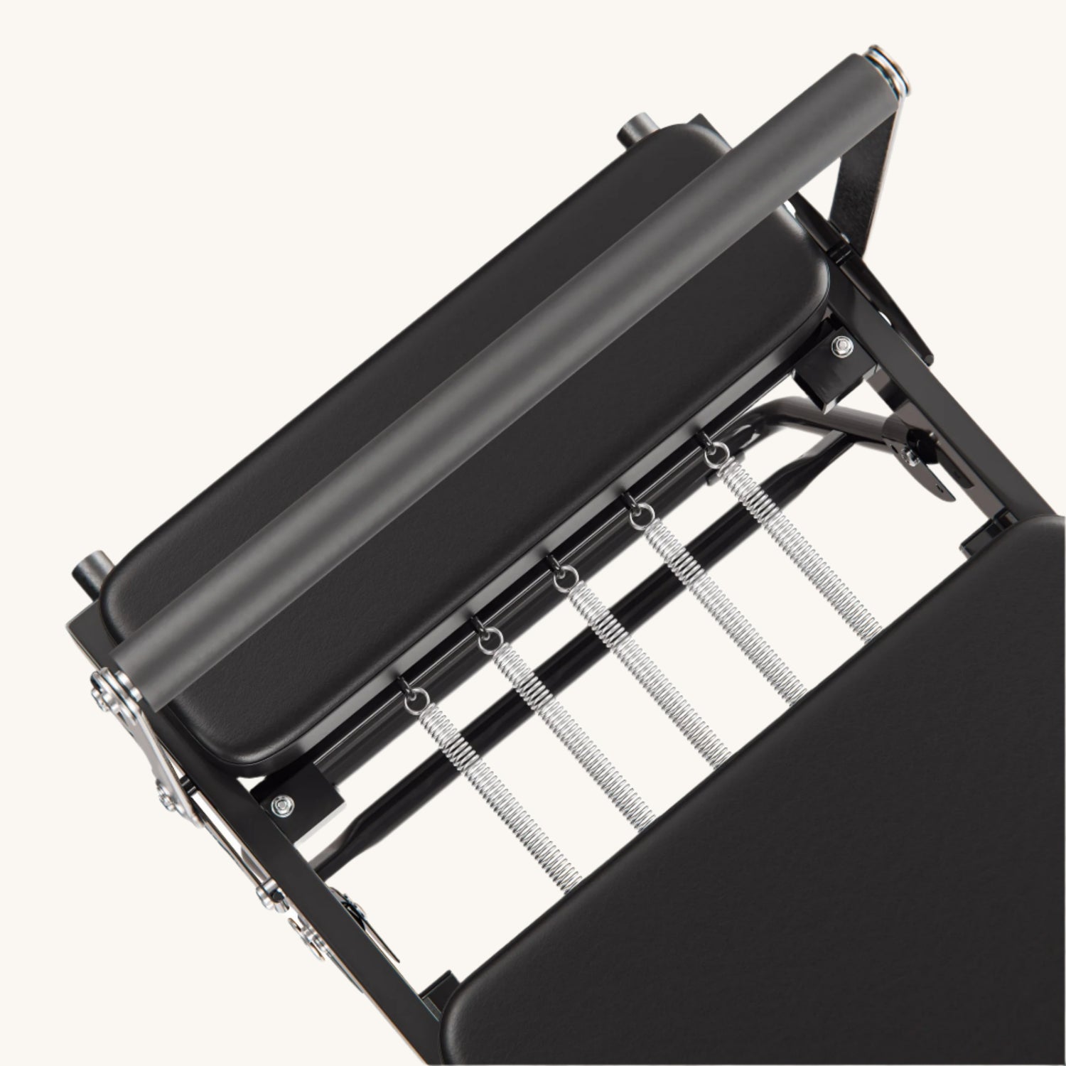 Our reformer offers a studio-quality experience at a fraction of the cost. With sturdy metal springs, a smooth carriage glide, and adjustable resistance, you'll get professional-level results from home.